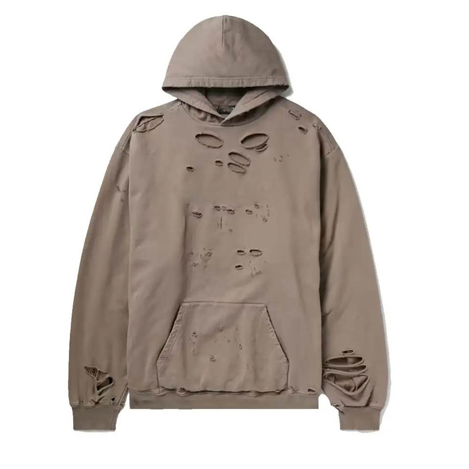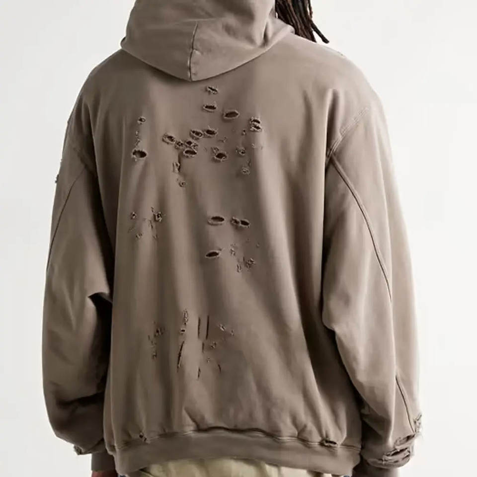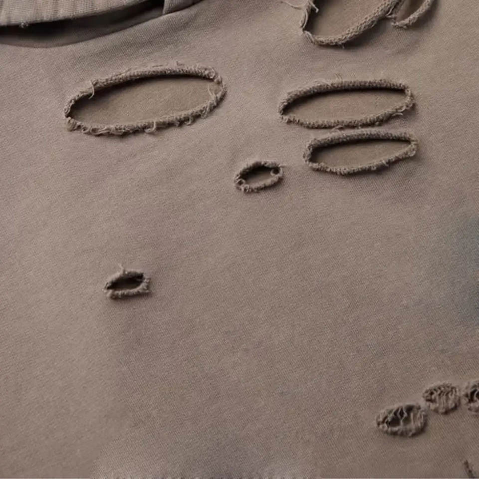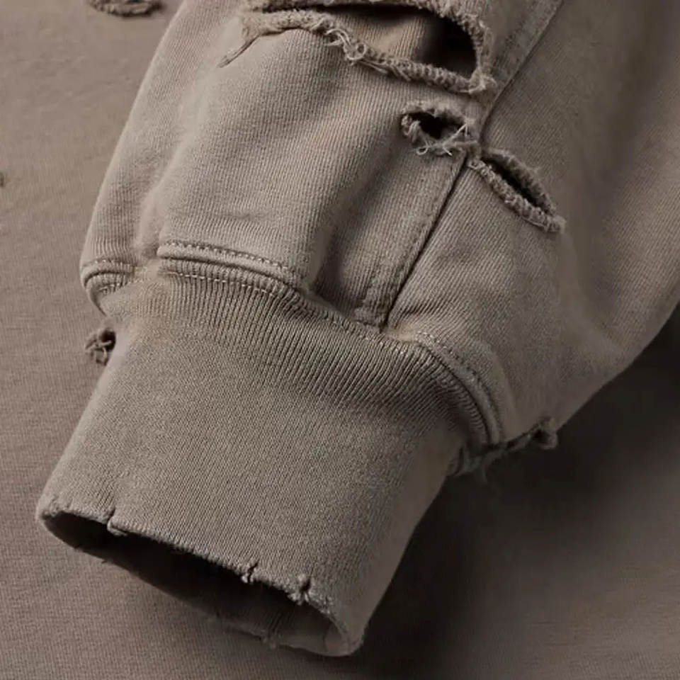 เสื้อฮู้ดดี้สไตล์ดิสเทรส ดีไซน์ใหม่ ผลิตตามสั่ง OEM คุณภาพสูง ผ้าฝ้าย 100% เป็นมิตรกับสิ่งแวดล้อม สวมใส่สบาย ปรับแต่งสี ขนาด และโลโก้ได้