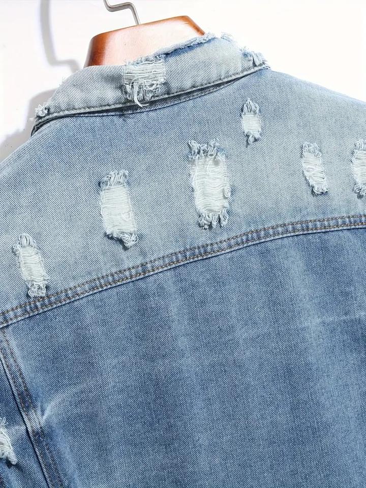 แจ็คเก็ตยีนส์ผู้ชายสไตล์วินเทจเท่ๆ สำหรับฤดูหนาว ปกเสื้อแบบลำลอง ติดกระดุมแถวเดียว แขนยาว ผ้าคอตตอนผสม มีกระเป๋าหลายช่อง