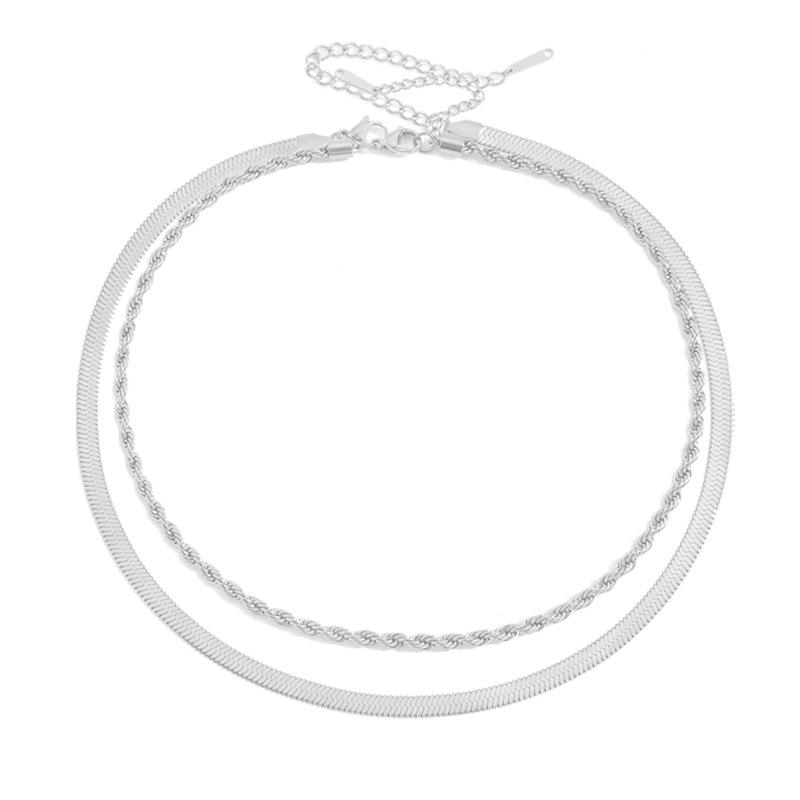 สร้อยคอสแตนเลสสีเงินสองชั้นแบบคู่สุดเก๋สำหรับผู้หญิงทันสมัยดีไซน์ตะขอแม่เหล็กแบบมินิมอลแบบทันสมัย