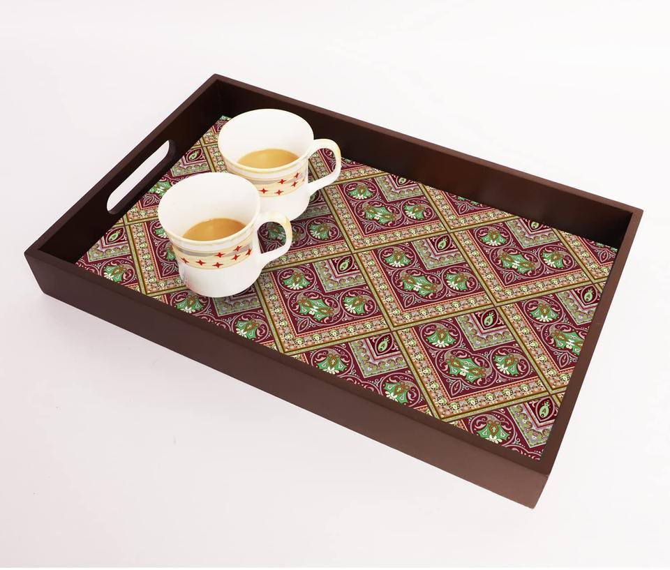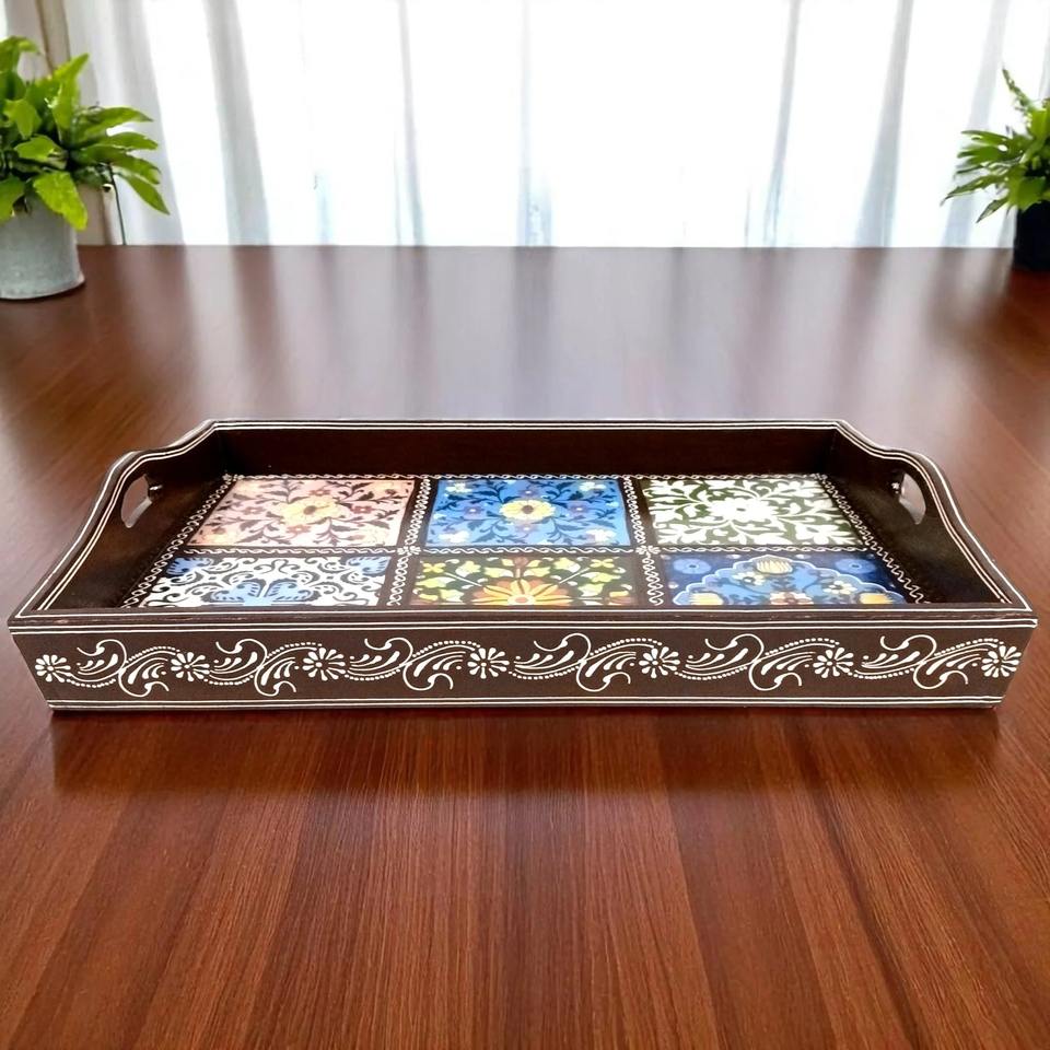 ถาดเสิร์ฟไม้เคลือบลายดอกไม้ ดีไซน์สวยงาม เป็นมิตรกับสิ่งแวดล้อม ทนทาน ทำด้วยมือ เหมาะสำหรับใช้ในบ้าน ร้านอาหาร และโรงแรม