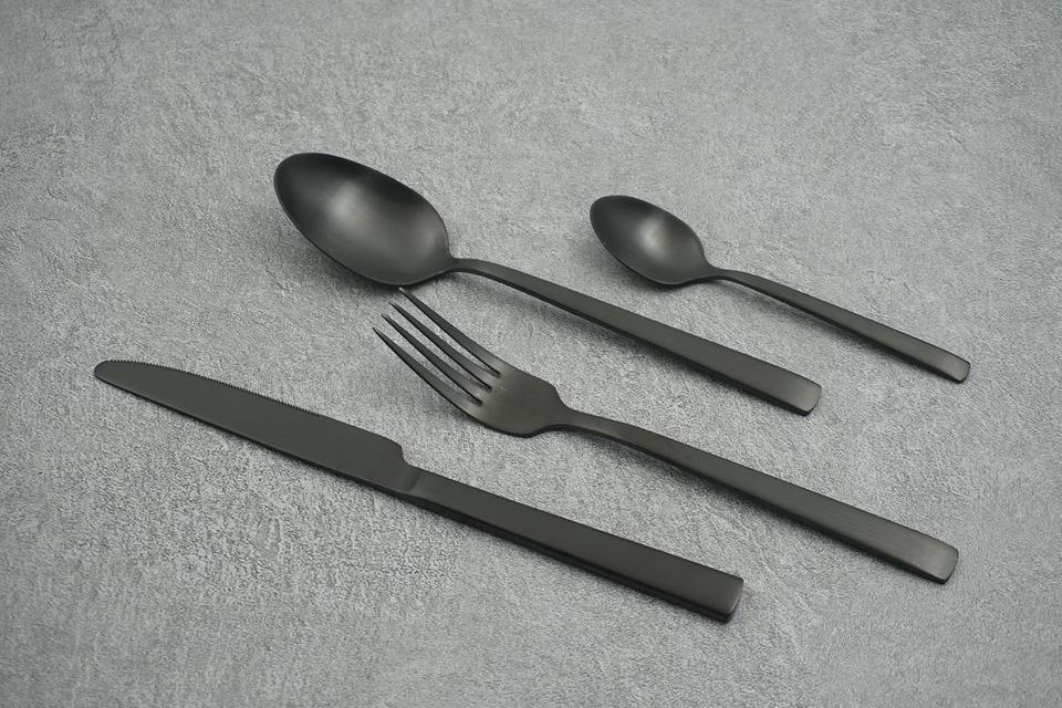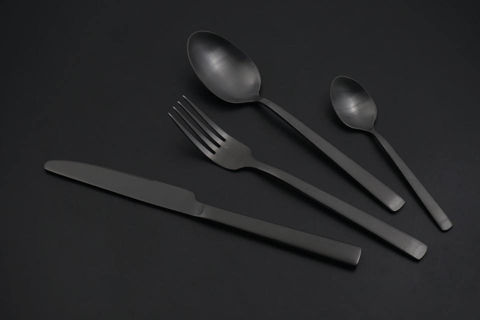 Stylish Eco Friendly Matte Black Stainless Steel Cutlery Set Modern Design Non Reflective Finish for Contemporary Dining Tables