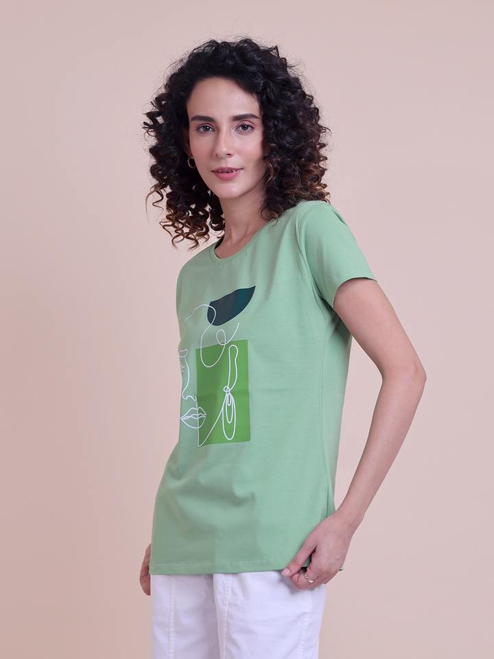 เสื้อยืดผ้าแคนวาสสีทันสมัยสำหรับผู้หญิงไซส์ใหญ่พิเศษพิมพ์ลายคอเสื้อครึ่งแขนใส่สบายทันสมัย