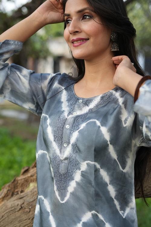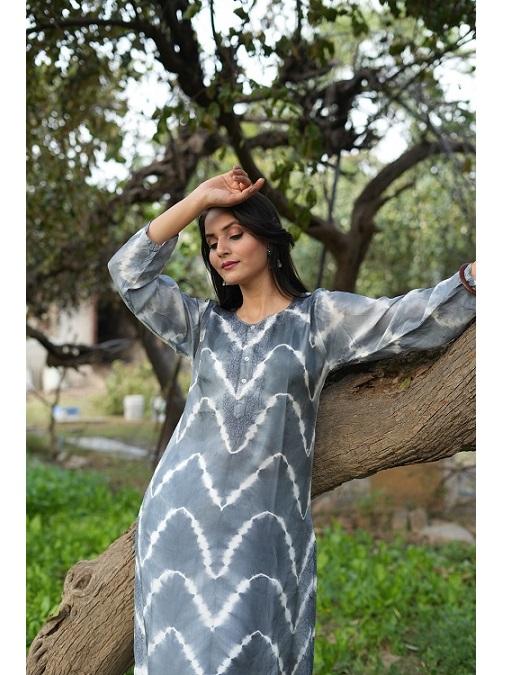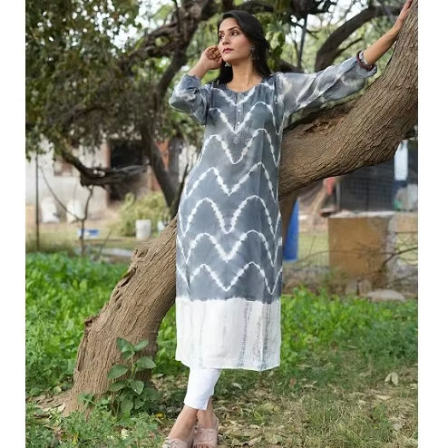 ชุดคุรตะสำหรับงานปาร์ตี้ทรงเอ็มไพร์ ผ้าฝ้ายออร์แกนิกทอมือสีเทาขาว แต่งลายปะติด ดีไซน์หรูหรา สง่างาม วินเทจ เป็นมิตรกับสิ่งแวดล้อม สำหรับผู้หญิง