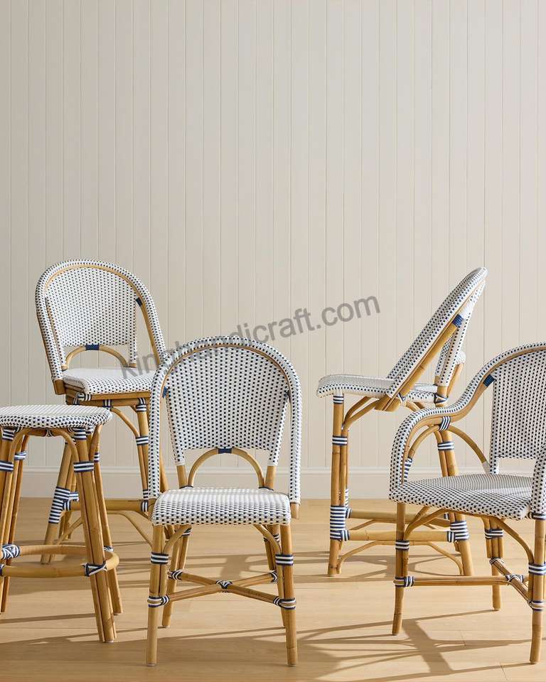 เก้าอี้สตูลบาร์ทำจากหวายสไตล์บิสโทรมีพนักพิงและที่วางเท้าสำหรับคาเฟ่ห้องครัวร้านอาหาร