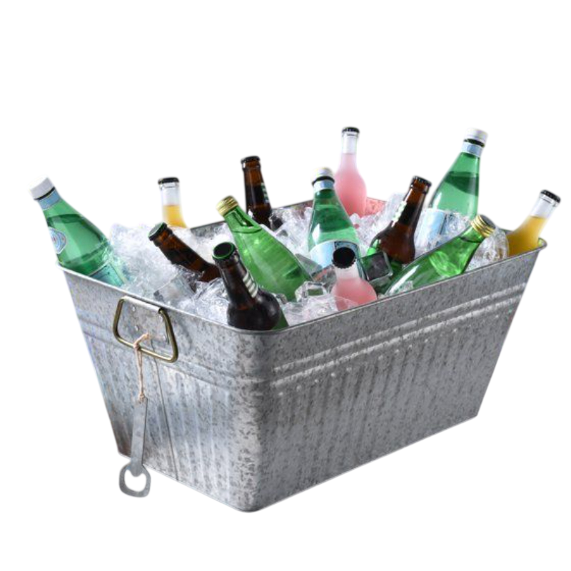 ถังน้ำแข็งโลหะชุบสังกะสีดีไซน์ทันสมัย พร้อมหูหิ้วเชือกด้านข้าง สำหรับใช้ในบ้านและงานอีเว้นท์ กล่องแช่ไวน์ ราคาสุดคุ้ม
