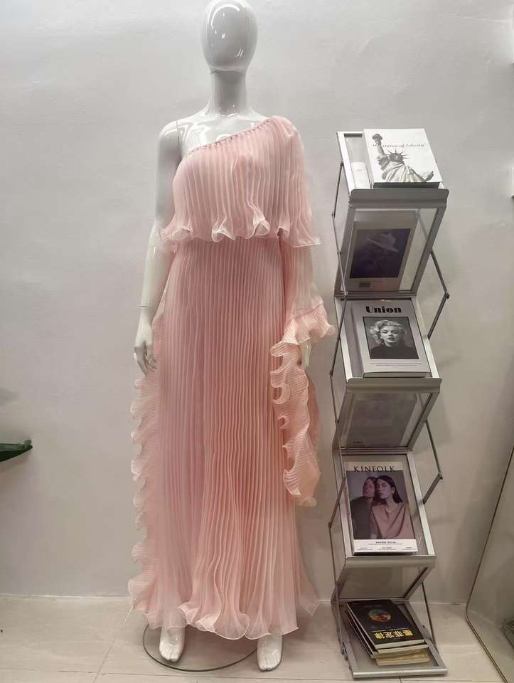 Keywords:Metallic Polyester Pleated Dress
