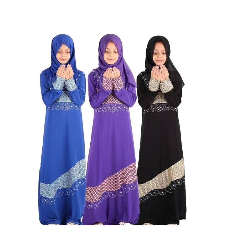 ชุดเดรสยาวสไตล์มุสลิมสำหรับเด็กผู้หญิงชุดฮิญาบสไตล์ลำลองกลางแจ้งพิมพ์ลายแบบดั้งเดิม