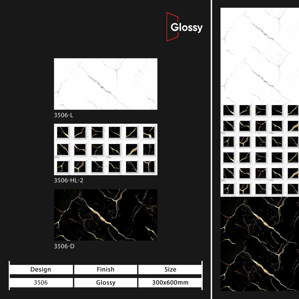 กระเบื้องบุผนังเซรามิกเงางามทันสมัย ขนาด 12x24 นิ้ว ดีไซน์ร่วมสมัยสำหรับห้องครัว ห้องน้ำ และการตกแต่งผนังภายใน