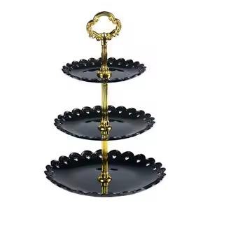 ขาตั้งเค้กโลหะสีทองทันสมัย 3 ชั้น ตกแต่งโต๊ะหรูหรา สำหรับงานเลี้ยงวันเกิด