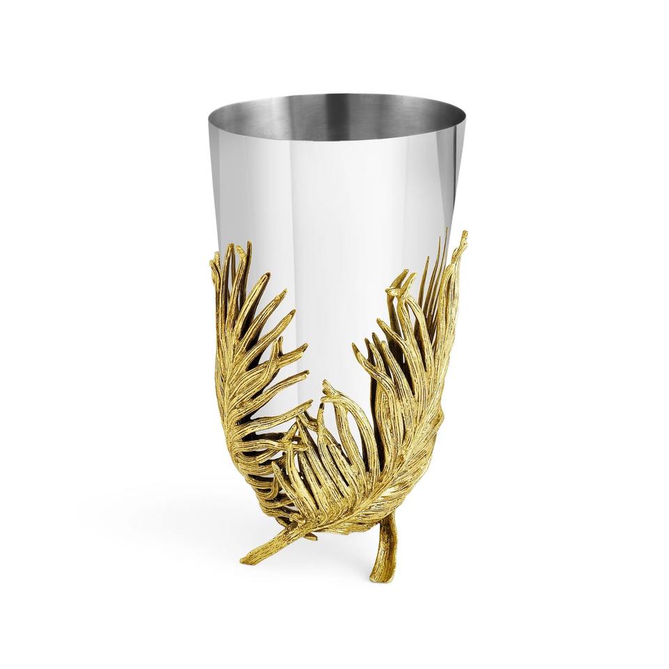 แจกันปาล์มสีทองมีสไตล์การออกแบบที่เป็นเอกลักษณ์เหมาะสำหรับดอกไม้โต๊ะอาหารห้องนอนสำนักงานการตกแต่งงานปาร์ตี้และการจัดแสดงที่บ้านจากอินเดีย