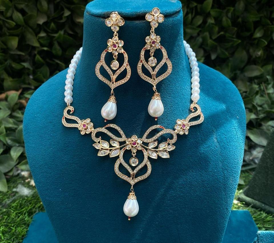 Stylish Gold Plated Real Pure Brass Kundan Necklace Set With Earrings Indian Wedding Party Wear Collection Jewelry for Women