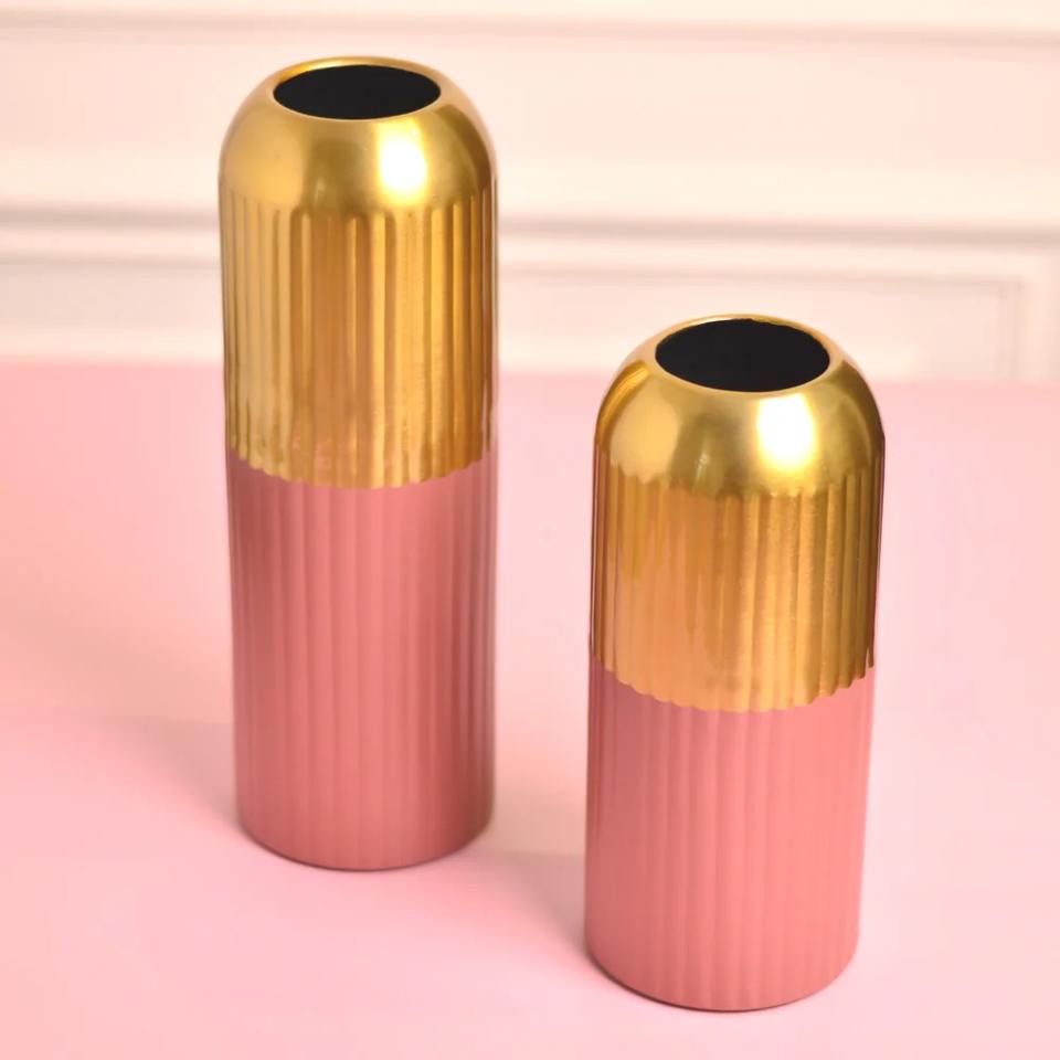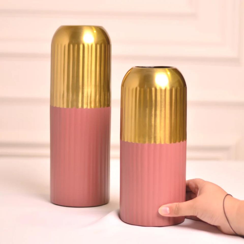 แจกันโลหะประดับกลางโต๊ะสำหรับห้องนั่งเล่นสำนักงานห้องนอนและของตกแต่งบ้านที่ทันสมัยสีทองและสีชมพู