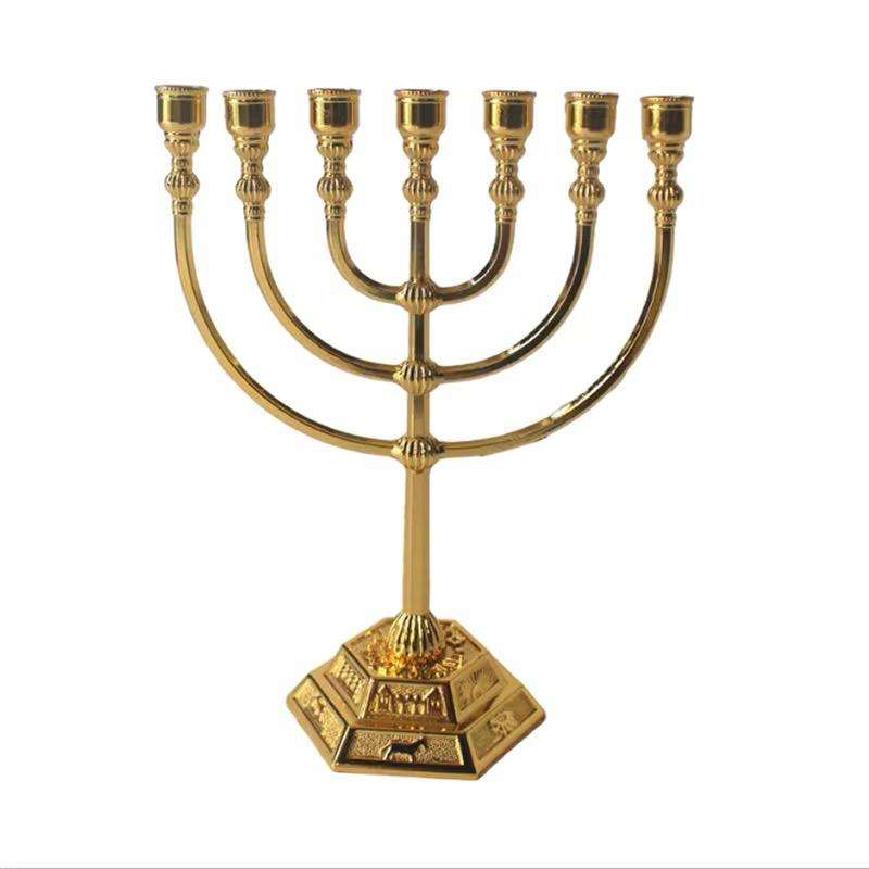 Stylish Golden Finished Menorah 7 Armed Candelabra For Religious Activity Handmade Menorah for Church Supplies