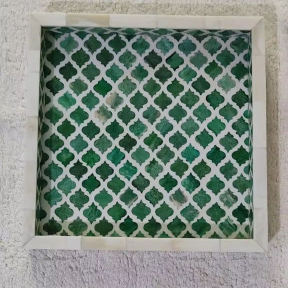 ถาดเสิร์ฟลายโมร็อกโกฝังกระดูกสีเขียวอย่างมีสไตล์ โดย crescentr crafts