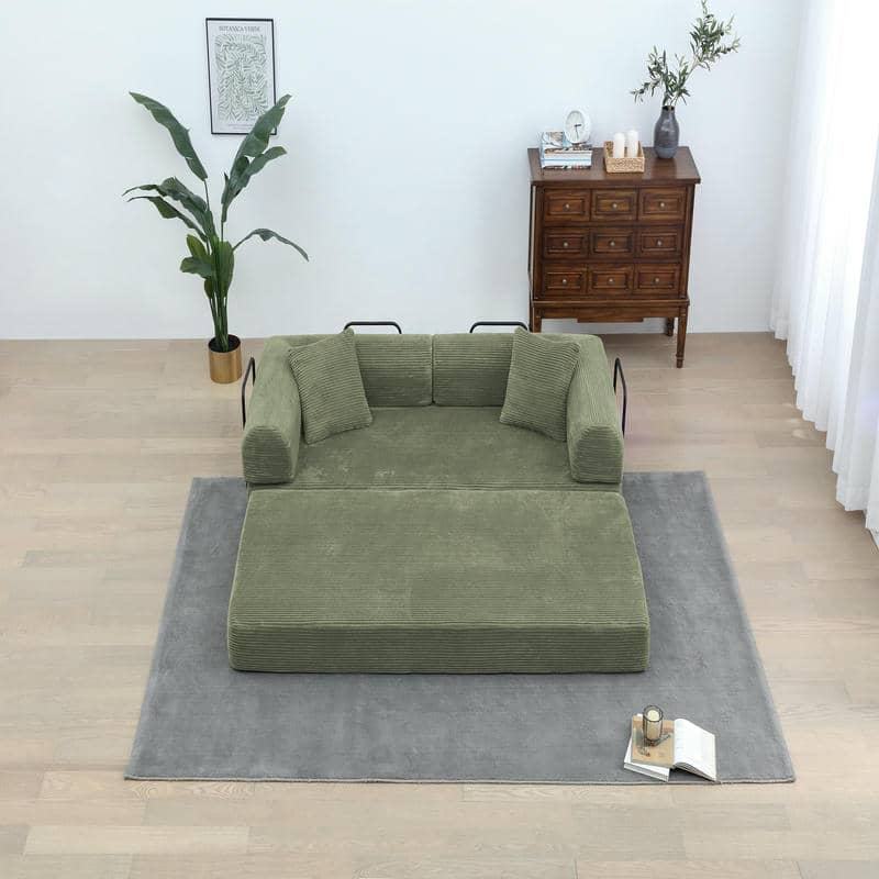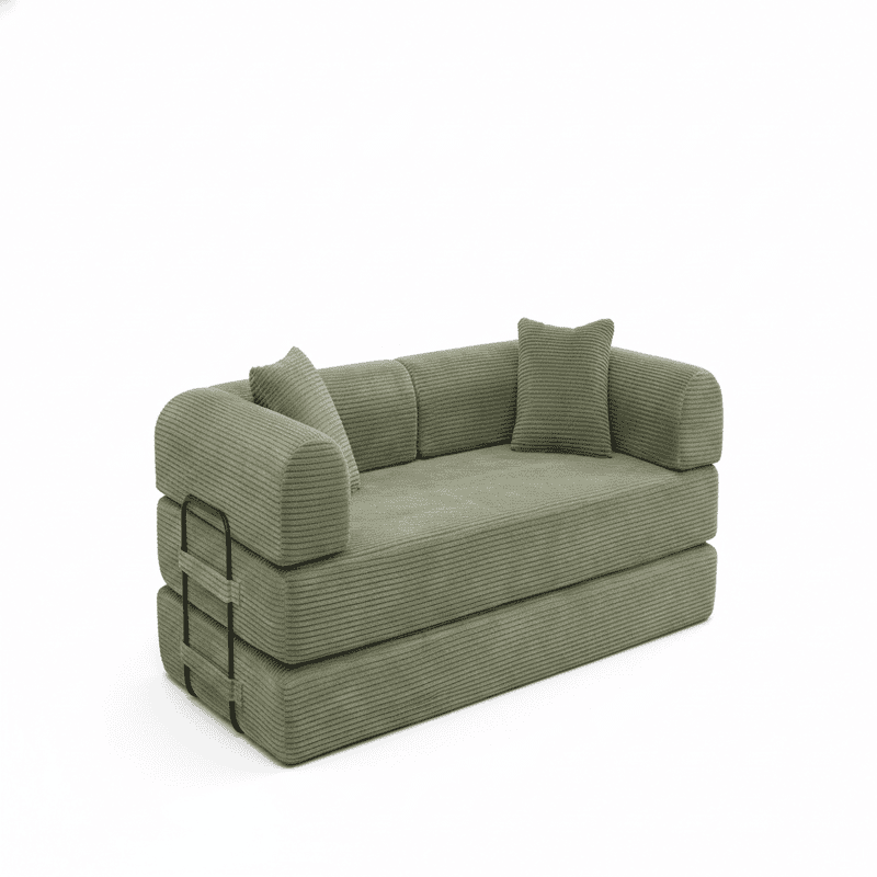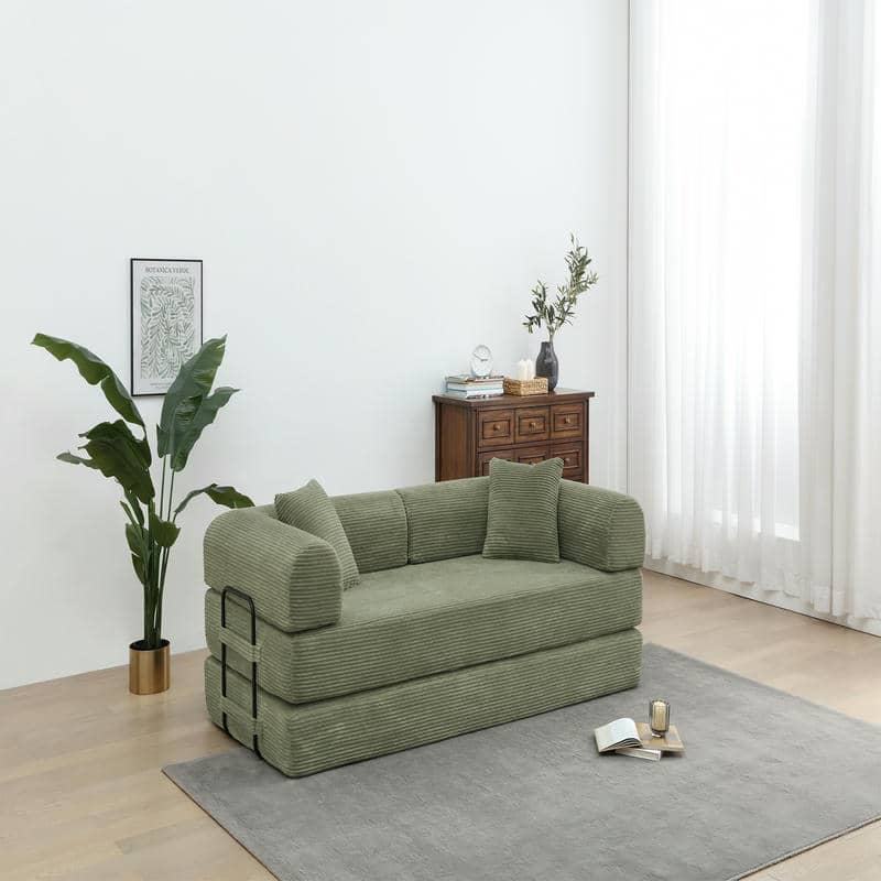 โซฟาเบดผ้ากำมะหยี่สีเขียวทันสมัย แบบโมดูลาร์ พับเก็บได้ พร้อมเบาะรองหลัง ชุดโซฟาอเนกประสงค์