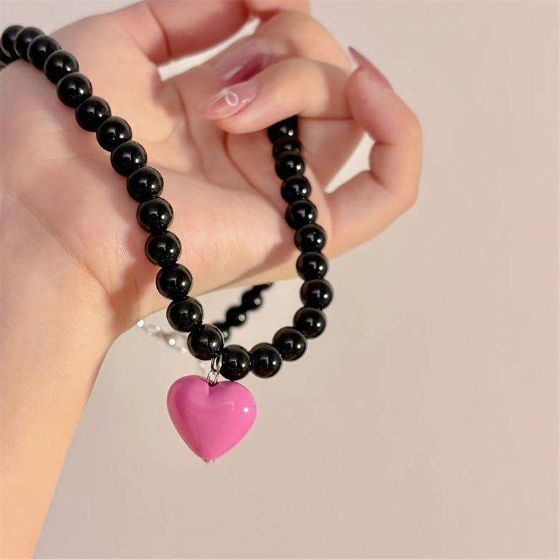 สร้อยคอลูกปัดเรซิ่นสีเขียวมีสไตล์พร้อมจี้หัวใจสีชมพู Y2K อินเทรนด์เครื่องประดับแฟชั่นเกาหลีทำด้วยมือสร้อยคอลูกปัดหนา