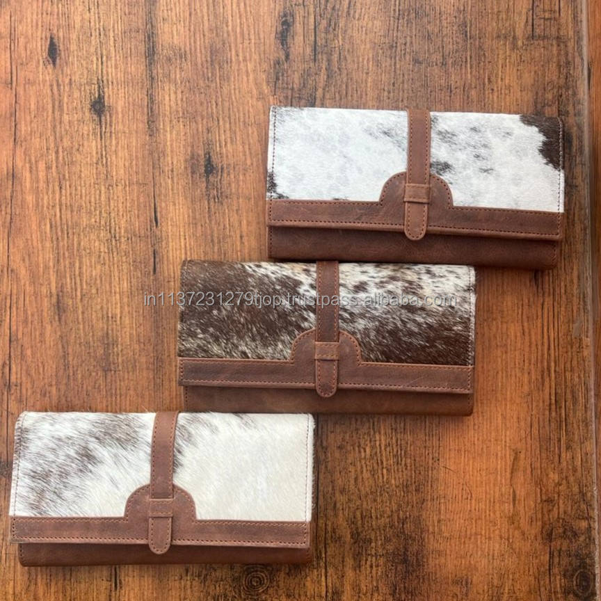สไตล์ผมบนซ่อนขนหนังกระเป๋าสตางค์ผู้หญิงวัวพิมพ์หนังคลัทช์ผู้หญิงกระเป๋าสตางค์จริงวัวผิวพิมพ์ของขวัญสําหรับเธอ