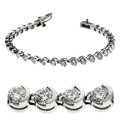 14K Gold Stylish Half Bezel Set Round Cut Diamond Tennis Bracelet