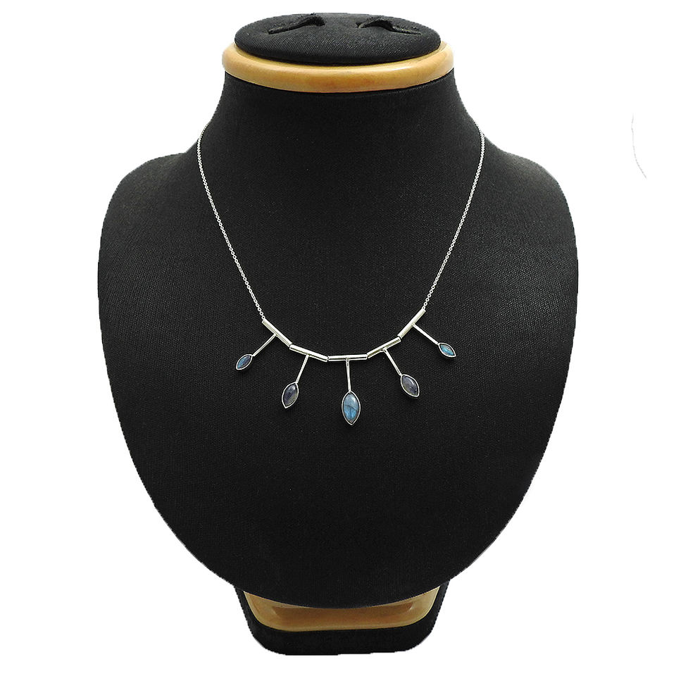 สร้อยคอ100% อัญมณีลาบราดอไรต์ธรรมชาติทำด้วยมือมีสไตล์925สวยงามสำหรับวันครบรอบ
