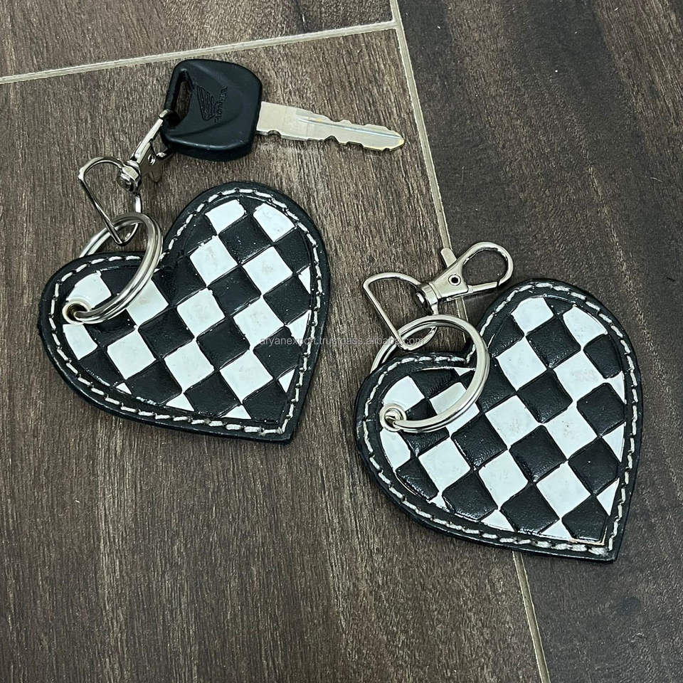 โซ่กุญแจหนังลายตารางหมากรุกมือ