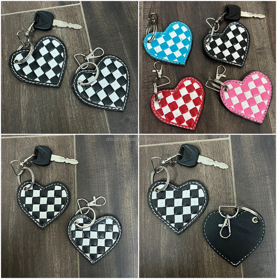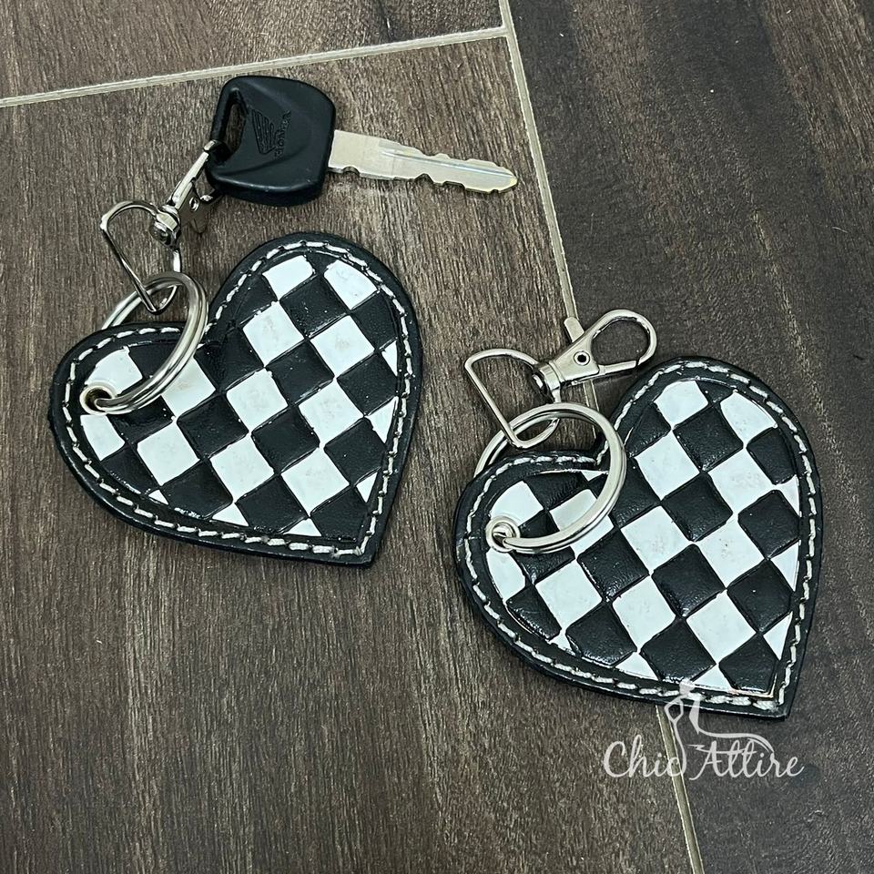 Product name:Hand Tooled Checkered Leather Key Chain