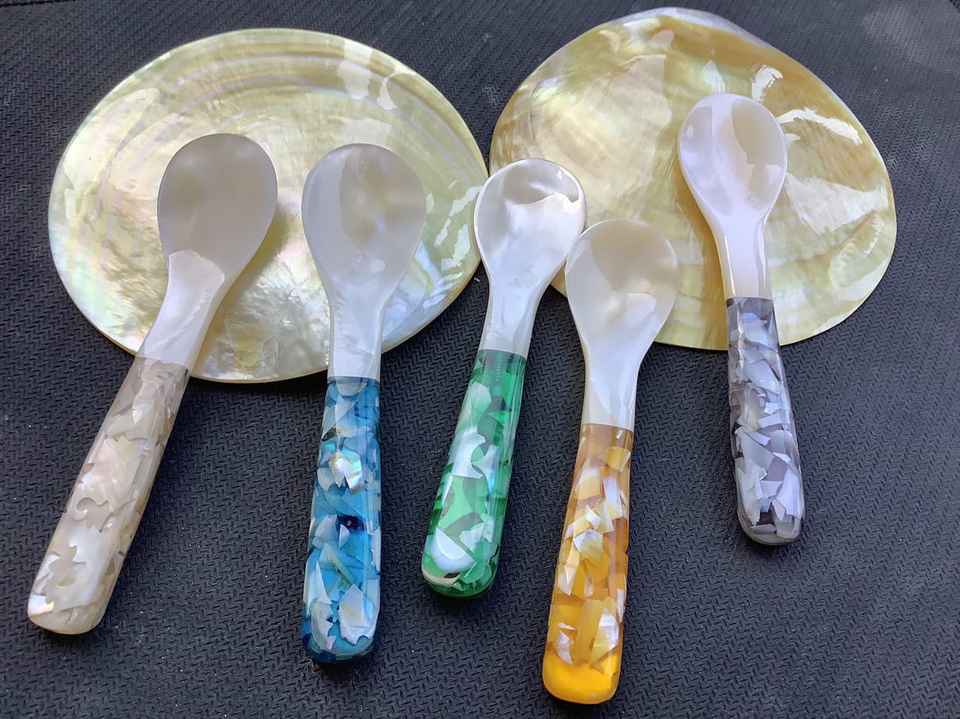 ช้อนเปลือกหอยที่ทำด้วยมืออย่างมีสไตล์ช้อนเปลือกหอยพรีเมี่ยมทำจากเปลือกหอยเปลือกหอยเปลือกหอยมุกเครื่องใช้บนโต๊ะอาหารสุดหรู