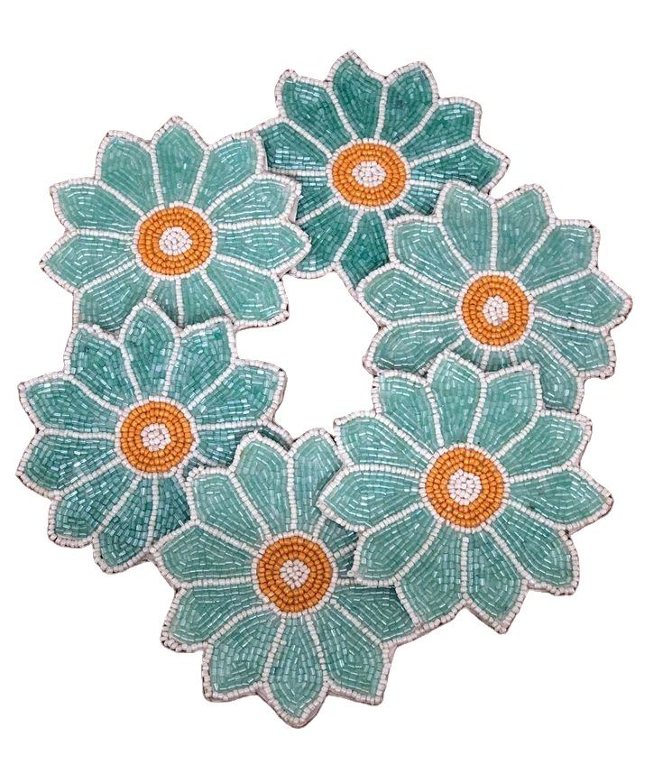 จานรองแก้วลูกปัดทำด้วยมือมีสไตล์พร้อมแผ่นรองแก้วประดับลูกปัดดีไซน์ตามเทศกาล