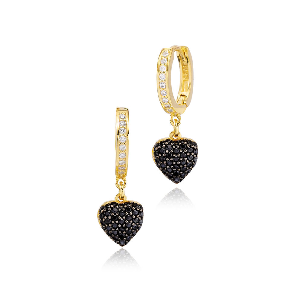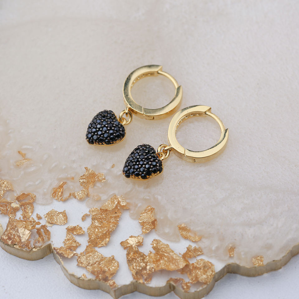 ต่างหูห่วงเพทายสีดำดีไซน์รูปหัวใจมีสไตล์ต่างหูห้อย12มม. ทำด้วยมือทำจากเงินแท้925ตุรกีเครื่องประดับเพื่อความสวยงาม
