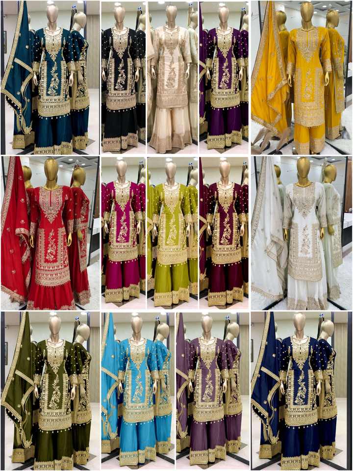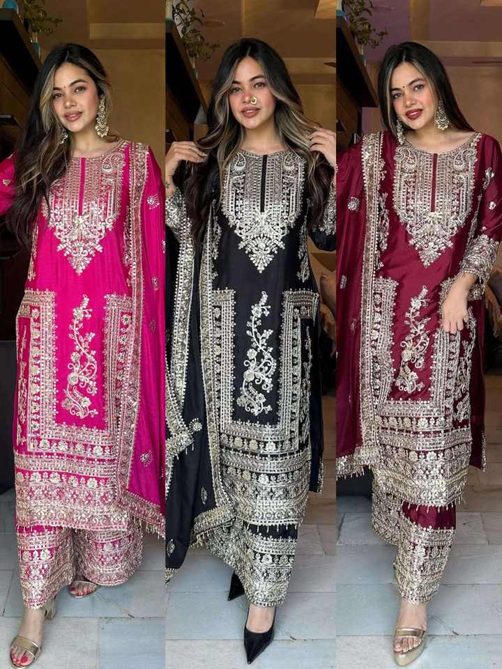 ชุดปากีสถานผ้าชีนอนปักลายหนักอย่างมีสไตล์ พร้อมดีไซน์คอเสื้อที่เป็นเอกลักษณ์ ขายส่งจากโรงงาน ราคาสุดคุ้ม