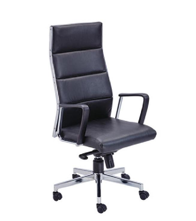 เก้าอี้สำนักงานหนังพนักพิงสูงสไตล์อินดัสเทรียล พร้อมฐานอะลูมิเนียมหมุนได้ รองรับสรีระ พร้อมที่วางแขนบุนวมเพื่อความสบาย