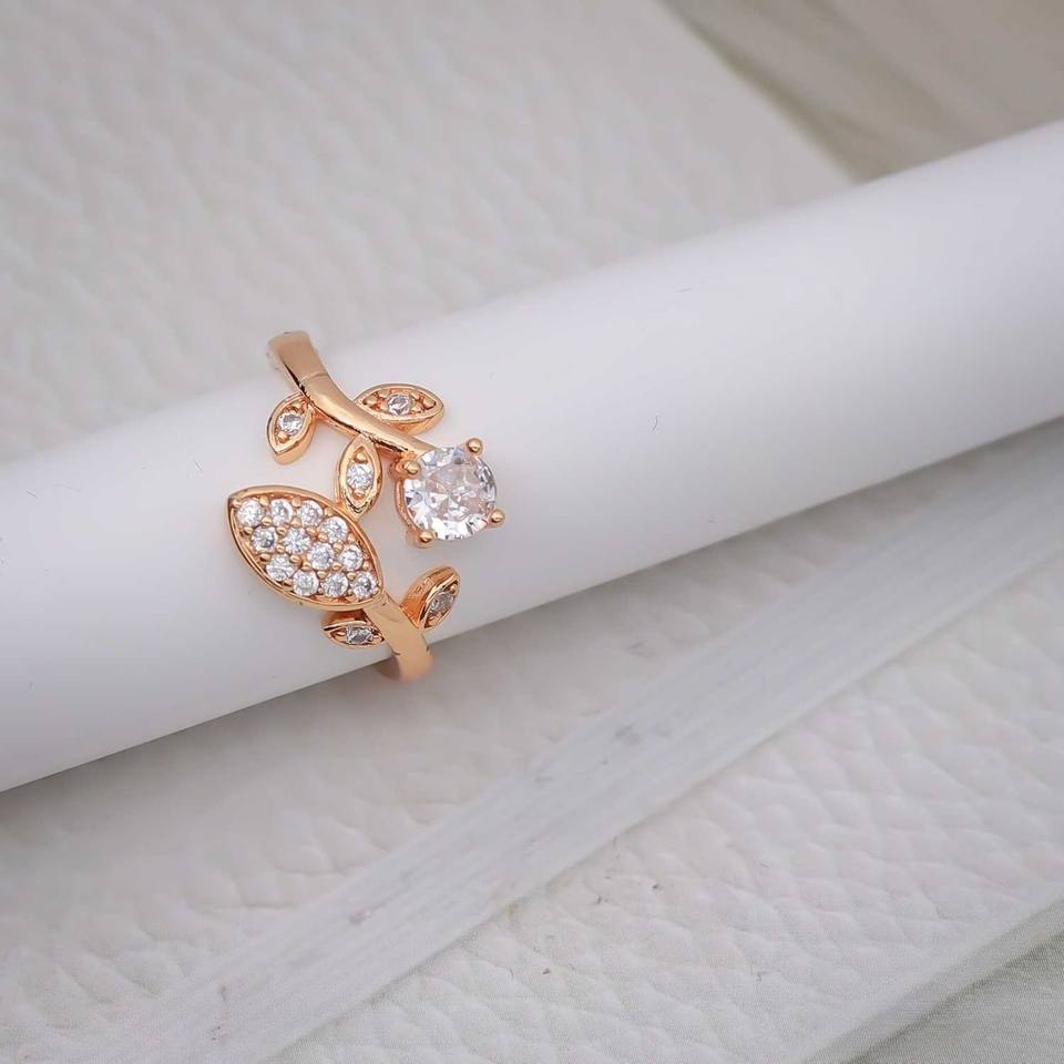 แหวนดอกไม้โลหะผสมคุณภาพสูงมีสไตล์ พร้อมการชุบทองและประดับด้วยหินคิวบิกเซอร์โคเนีย AD