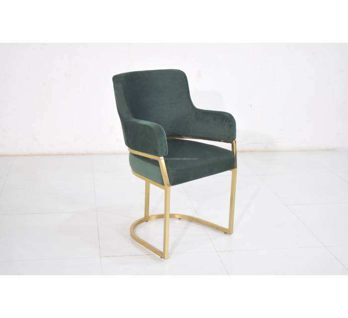เก้าอี้รับประทานอาหารสำหรับใช้ในบ้านสำนักงานทันสมัยวัสดุกำมะหยี่สีเขียวคลาสสิกพร้อมโครงเหล็กเก้าอี้อุตสาหกรรมขายดี