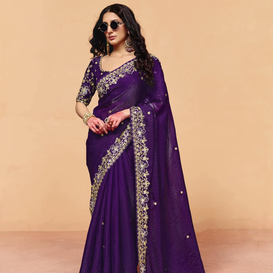 ส่าหรีอินเดียสุดหรู พร้อมงานฝีมือประณีตและผ้าคุณภาพเยี่ยม เหมาะสำหรับงานแต่งงานและโอกาสพิเศษ
