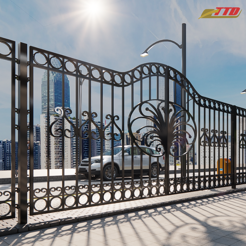 ประตูเหล็กดีไซน์ทันสมัยสำหรับทางเข้าบ้าน - เป็นมิตรกับสิ่งแวดล้อม ดีไซน์ร่วมสมัย สูง 7 ฟุต พร้อมบริการสร้างแบบจำลอง 3 มิติ