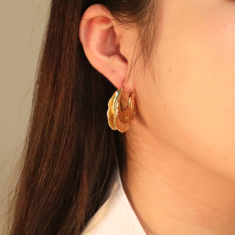 ต่างหูทรงห่วงหนา ดีไซน์เก๋ไก๋ ลายตอกแบบไม่สม่ำเสมอ ชุบทอง 18k กันน้ำ เหมาะสำหรับผู้หญิง