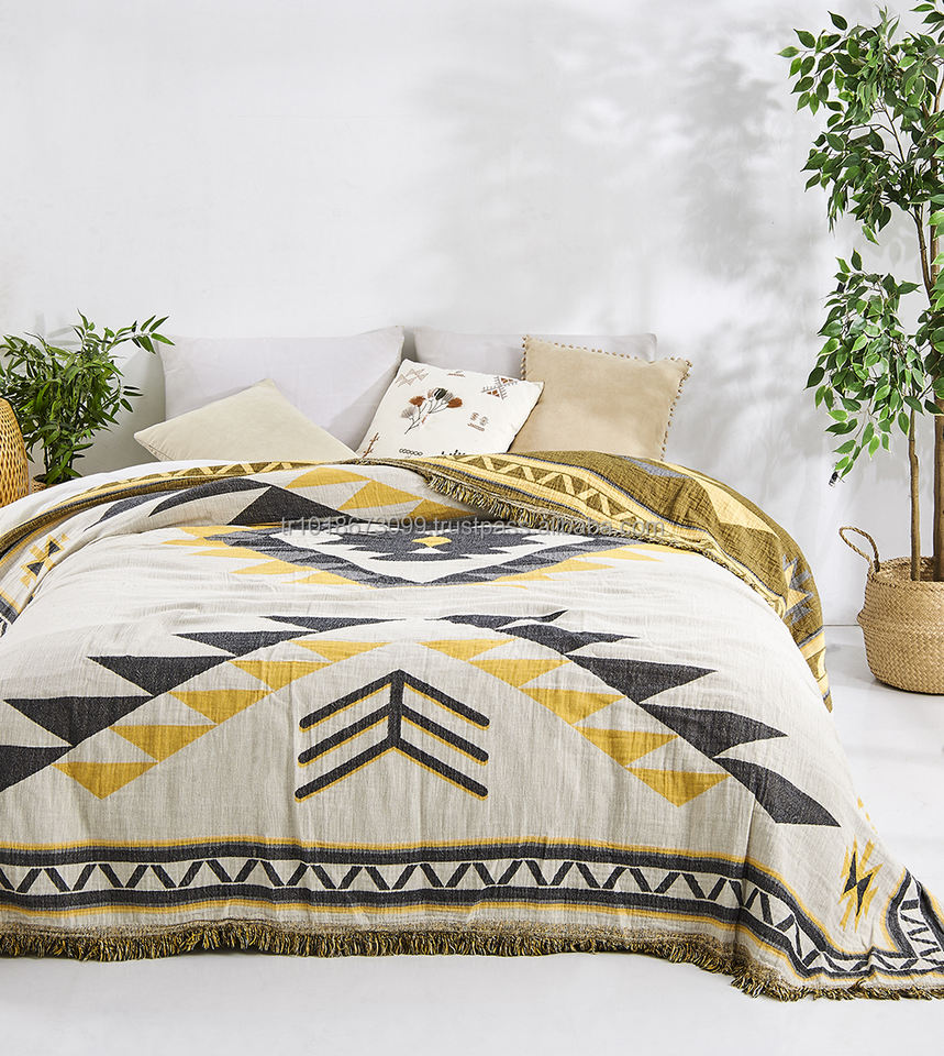 ผ้าคลุมเตียงผ้าฝ้าย100% แจ็คการ์ดขนาด230x260ซม. 90x102นิ้วผ้าห่มคอลเลกชั่น