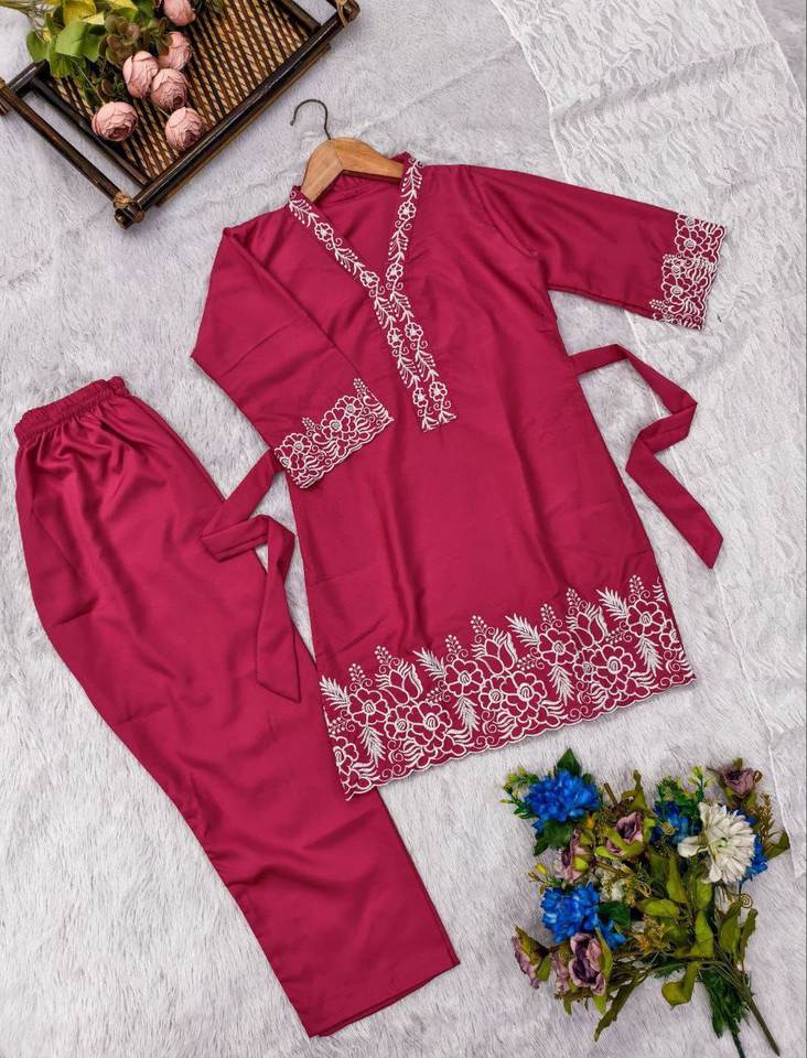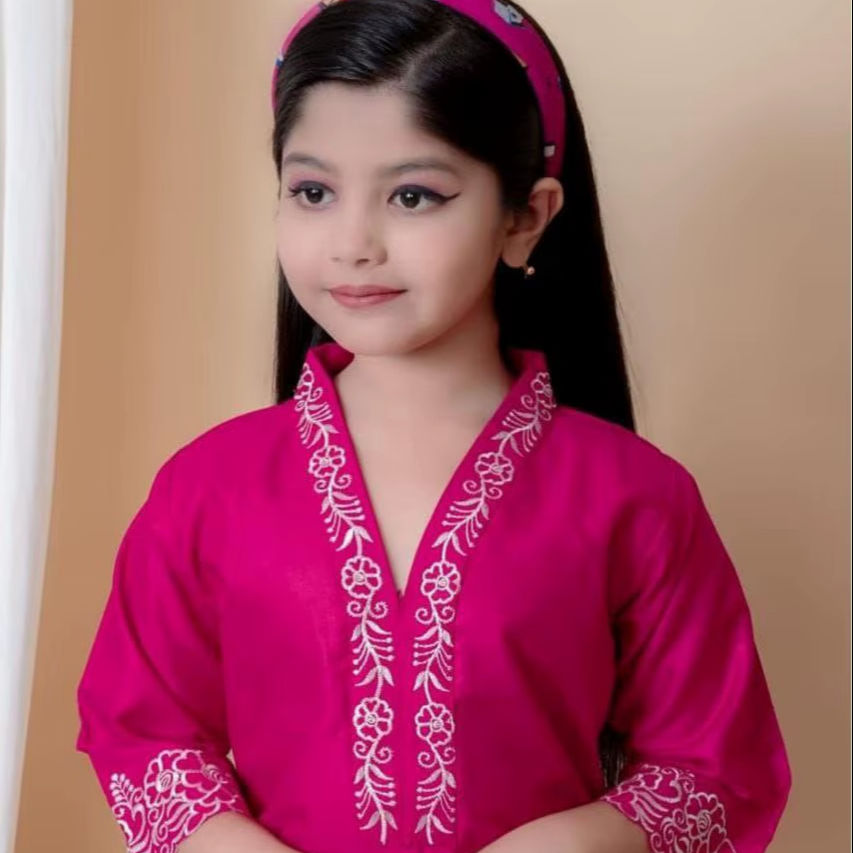 ชุดคุर्ติเด็กสไตล์ชาติพันธุ์สุดเก๋พร้อมลายปักและผ้าคลุมไหล่รัสเซลเน็ต – ดีไซน์พรีเมียม