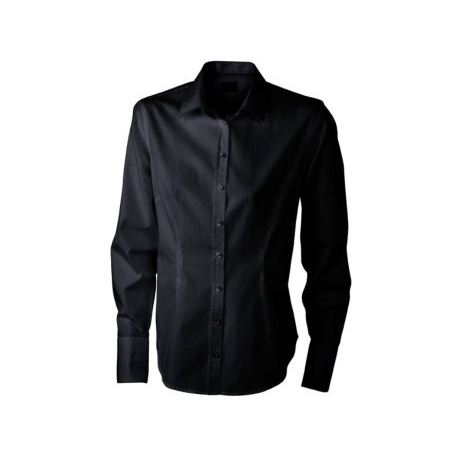 เสื้อเชิ้ตผ้าป๊อปลินแขนยาวสำหรับผู้หญิงคลาสสิกขนาด XS ถึง XL ดูแลง่ายปกตั้งตกแต่งด้วยลูกไม้สำหรับสำนักงาน