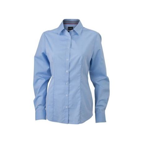 เสื้อเชิ้ตผ้าปอปลินแขนยาวสำหรับผู้หญิงไซส์ XL ลายทางสีพื้นดูแลรักษาง่าย