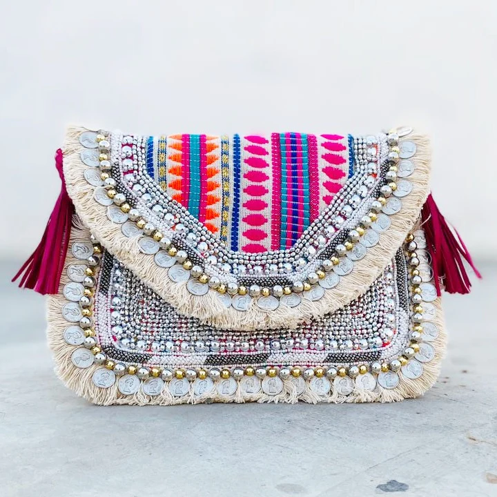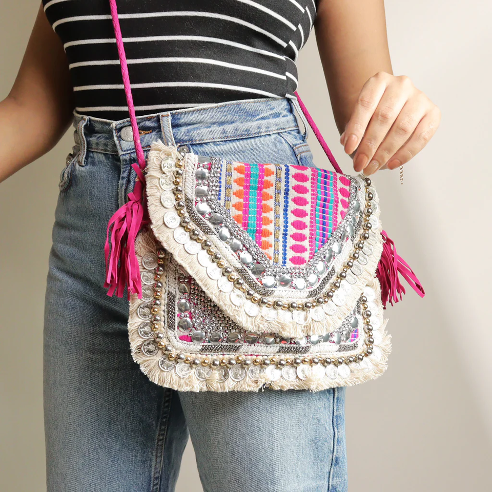Stylish Lady Zipper Closure Handbag Women's Handcrafted Coconut Shell Beaded Sling Bag with Cotton Lining by glowin fashion