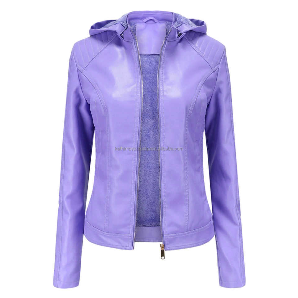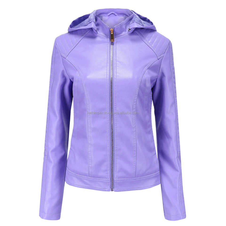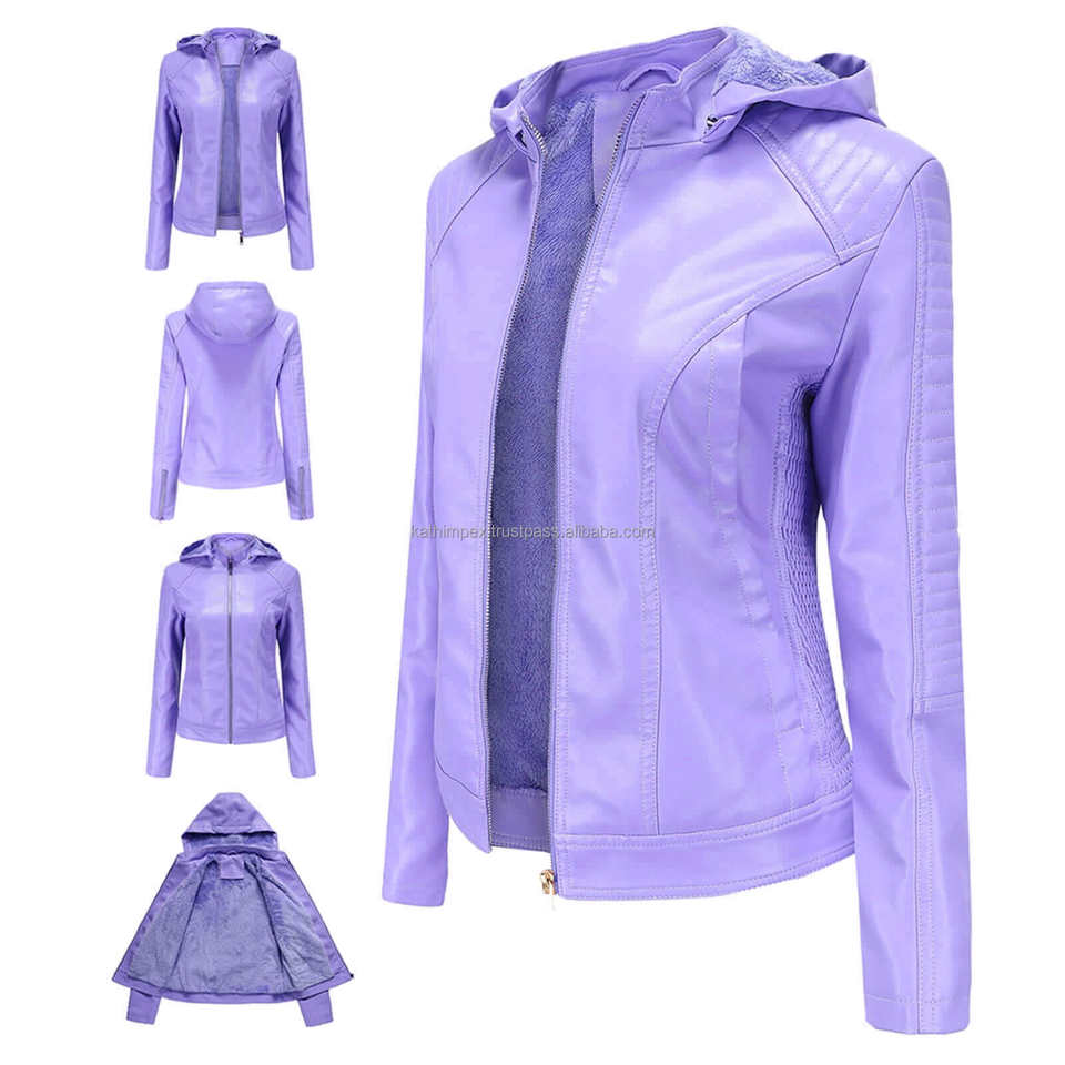 แจ็กเก็ตมอเตอร์มีฮู้ดลายมีสไตล์ผ้าลาเวนเดอร์สำหรับผู้หญิงแจ็กเก็ตมีประโยชน์หลากหลายพร้อมตัวปิดซิปซับในใส่สบายทนทาน