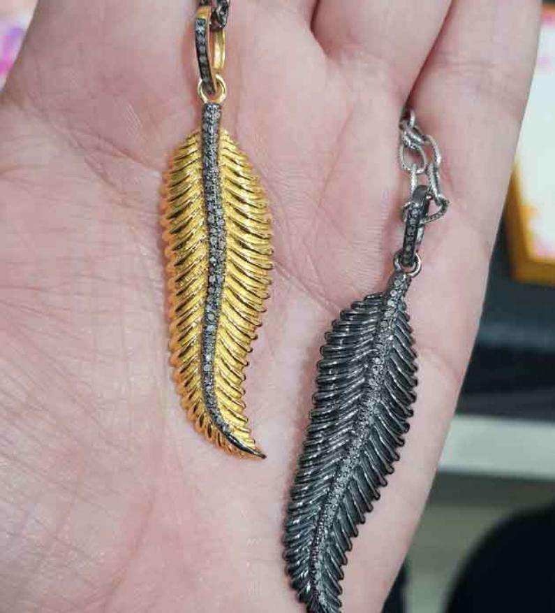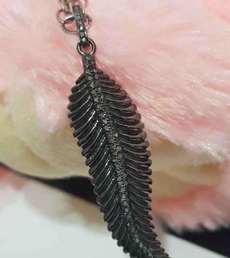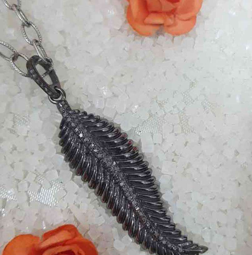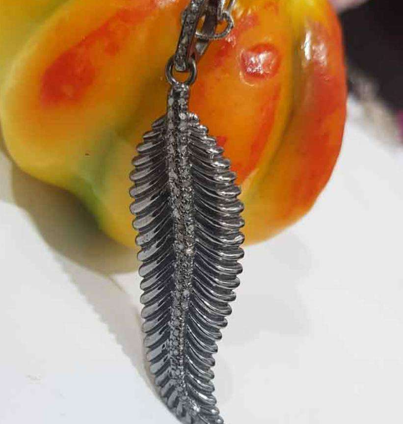 925ใบไม้โบราณมีสไตล์เครื่องประดับชุบโรเดียมสีดำประดับเพชรธรรมชาติขนาด50x15มม. สำหรับงานแต่งงานและงานหมั้น