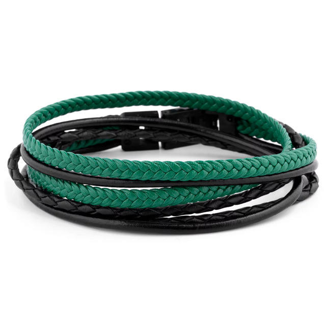 สร้อยข้อมือหนังสีดำและสีแดงมีสไตล์
