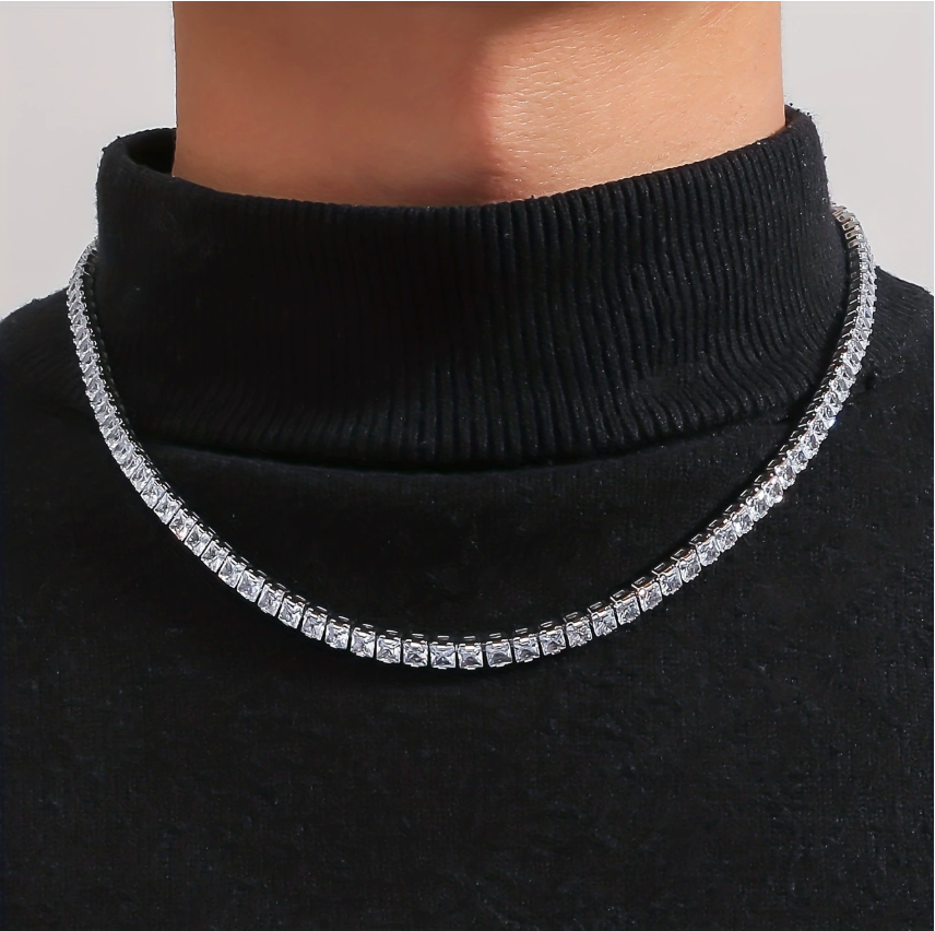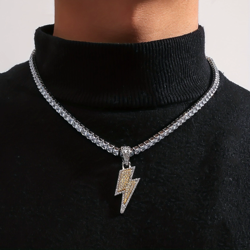 สร้อยคอจี้เพชรโมอิสสายฟ้าฟาดมีสไตล์พร้อมคริสตัลเป็นประกายและโซ่เงินสำหรับฮิปฮอปแฟชั่นประจำวันสำหรับปาร์ตี้