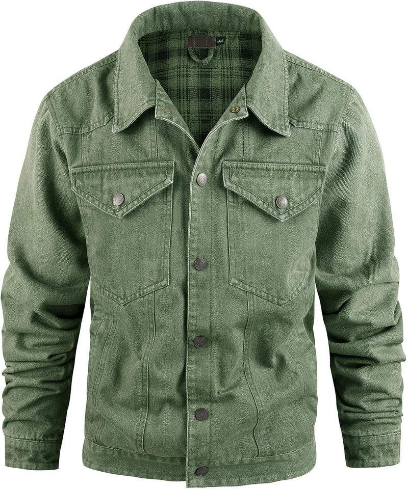 แจ็กเก็ตยีนส์สำหรับผู้ชายดูมีสไตล์แจ็กเก็ตผ้าทำจากผ้าฝ้ายสวมใส่บนถนน