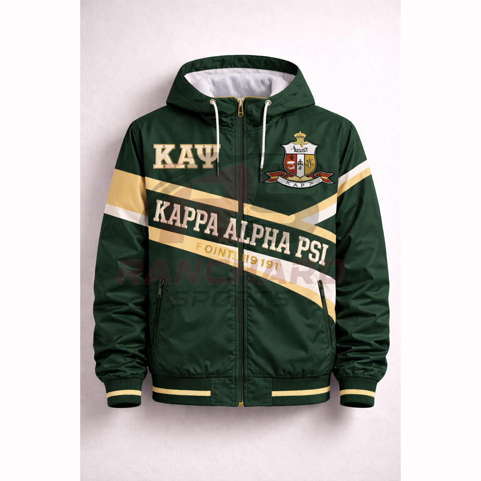 เสื้อแจ็คเก็ตกันลมสไตล์เท่ห์ สำหรับชมรม Kapa Alpha Psi ชุดกรีกที่ดีที่สุด ทนทาน ระดับมืออาชีพ เสื้อแจ็คเก็ตกันลม Kapa Alpha Psi สำหรับชาวกรีก