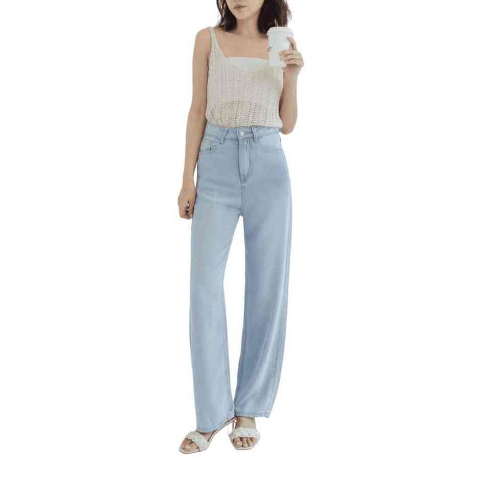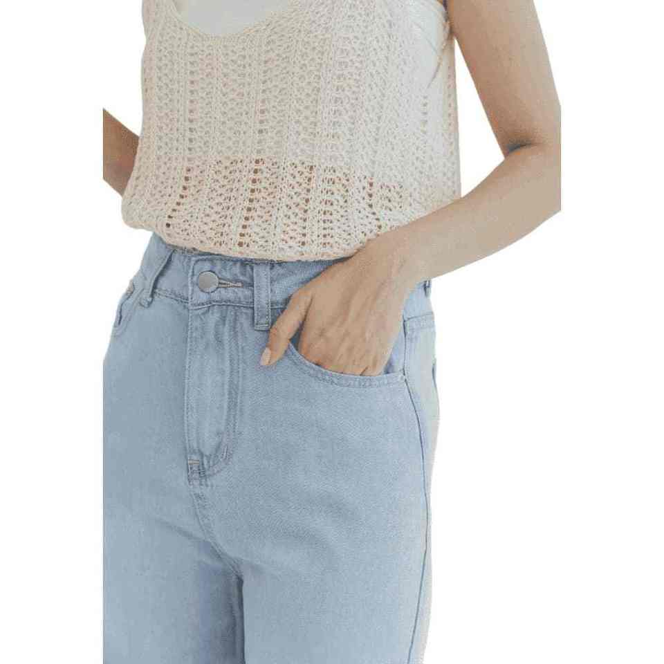 กางเกงยีนส์ทรงหลวมมีสไตล์สำหรับผู้หญิงสีฟ้าฟอกมีกระดุมทรงหลวมกางเกงยีนส์ชุดลำลองทรงตรงกางเกงสำหรับผู้หญิงจาก rasheed MFG Co
