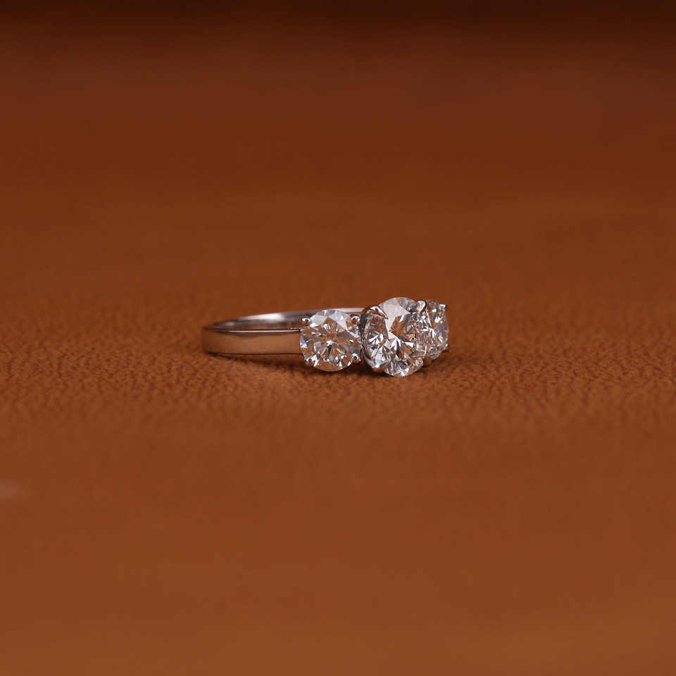 แหวนหมั้นหรูหราแบบกำหนดเอง18KT หินสามชิ้นทันสมัยประดับด้วยเพชรที่โตแล้วผ่านการรับรองจาก IGI