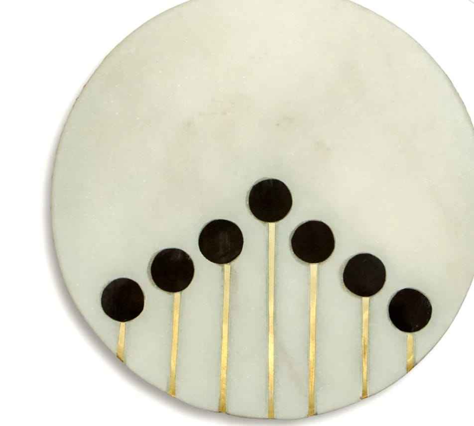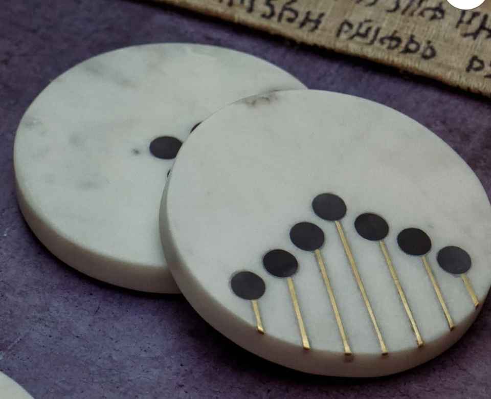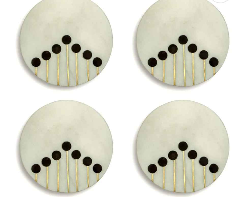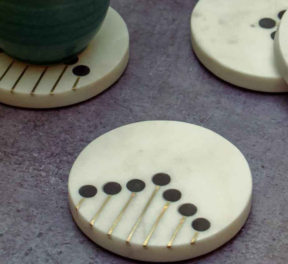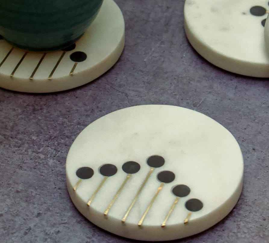 Stylish Luxury Natural Marble Stone Coasters Tableware Mats & Pads with Brass Wire Resin Dots for Home Kitchen Restaurant