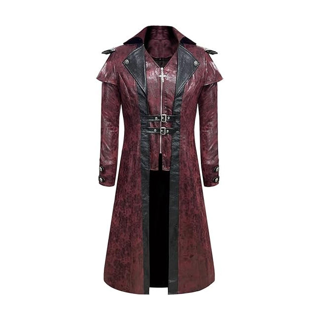 เสื้อโค้ทผู้ชายแบบมีซิปคอตั้งสไตล์พังค์วินเทจแจ็กเก็ตหนังแจ็คเก็ตมอเตอร์ไซค์สีสดใส